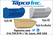 Elevator buckets made of polyethylene, urethane, nylon, and steel are manufactured to carry grain and other bulk flow materials for elevator legs in the grain and feed industry. Manufacturers listed below offer a wide variety of durable elevator buckets and capacities to meet fill and discharge requirements in demanding grain elevator environments. To learn more about the buckets, options and accessories that will fit your elevator's requirements, request more information from the companies listed below.