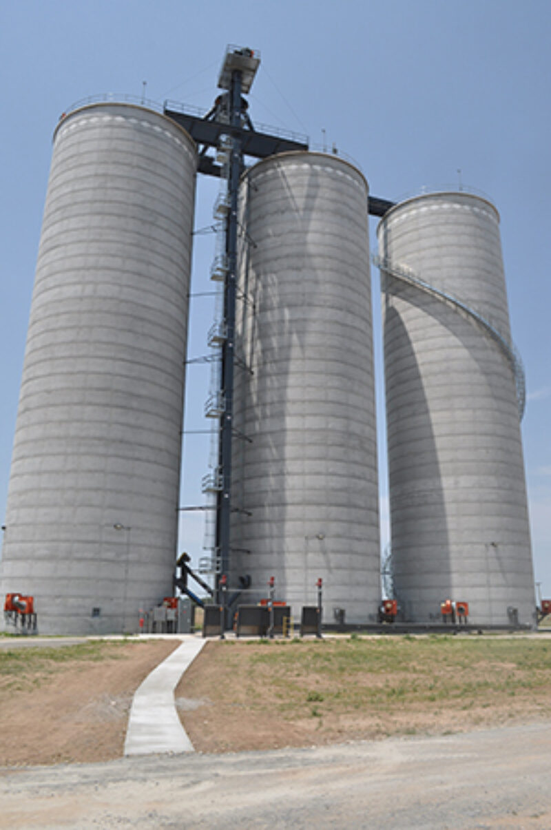 The three concrete tanks making up the elevator storage were constructed by McPherson Concrete Storage Systems, McPherson, KS (800-999-9191).