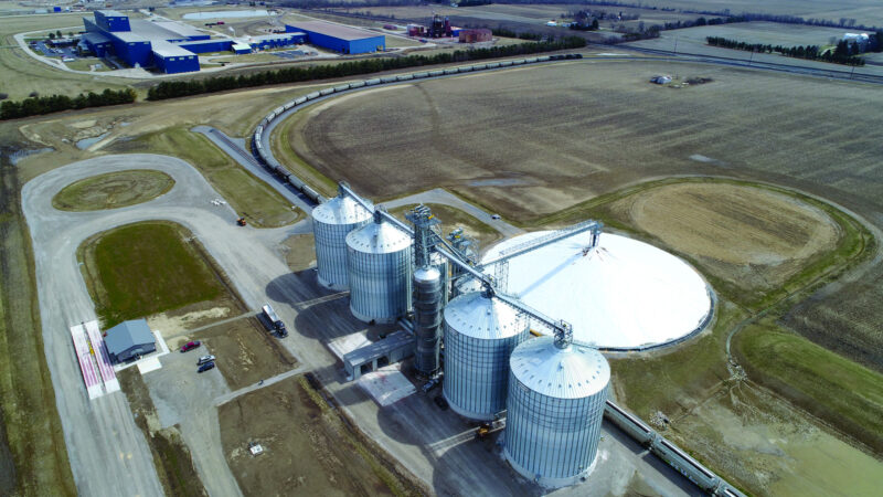 Gerald Grain Center Inc.'s new rail terminal on the Norfolk Southern near Delta, OH. The terminal features 1.6 million bushels of upright storage and a 1.1 million-bushel temporary pile.